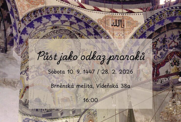 Redakce portálu E-Islam.cz a přidruženého portfolia na sociálních sítích vás srdečně zve na přednášku PŮST JAKO ODKAZ PROROKŮ která proběhne v Brěnské mešitě dne 28. 2. 2026 v 16:00 hodin. Půst je jedním z věčných způsobů uctívání ve zjevených zákonech všech proroků. Jak tuto věčnost předpisu půstu reflektuje poslední z nich, Boží Posel Muhammed صلى الله عليه وسلم? Jak půst ...